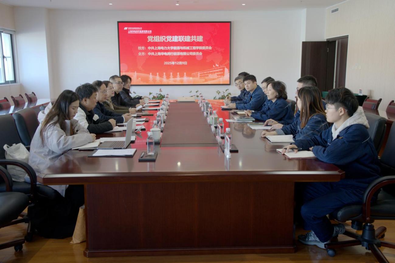 上海华电闵行能源有限公司总经理、党委副书记吴瑶对学院一行的到来表示热烈欢迎,对长期以来给予公司的支持致以诚挚感谢,并从发展历程、能源保供、绿色转型、科技创新及党的建设等方面详细介绍企业情况。她指出,当前电力行业正处于产业变革与创新升级的关键时期,期待以此次党建共建为契机,进一步强化双方学习交流与沟通对接,在人才培养、科研攻关、党员教育等领域凝聚合力,共同为上海能源转型贡献“校企联动方案”。